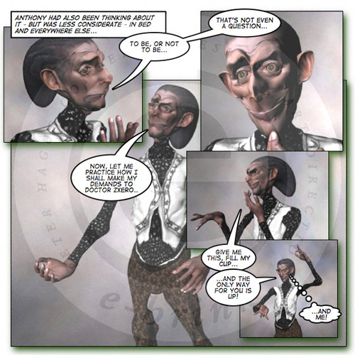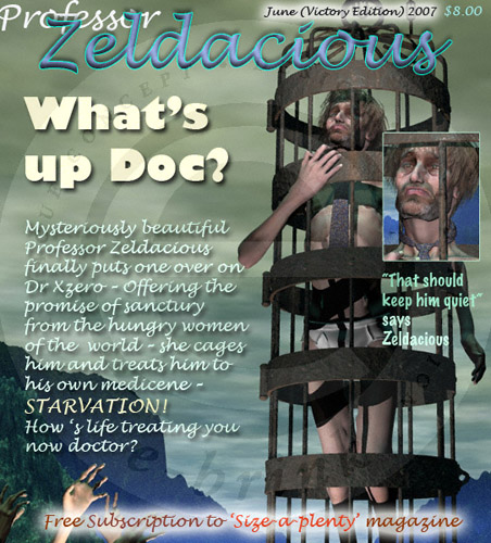 This is a short concept board for the 'Size Zero' idea. In which Dr Xzero turns himself into a cartoon character and seeks to make all women conform to size zero. Finally, starving and ravenous, they turn against him. Zelda, his ex-wife and sworn enemy, comes up with a perfect solution. There's more of Zelda, Dr Xzero, Emo and Anthony on their own pages in this gallery.
